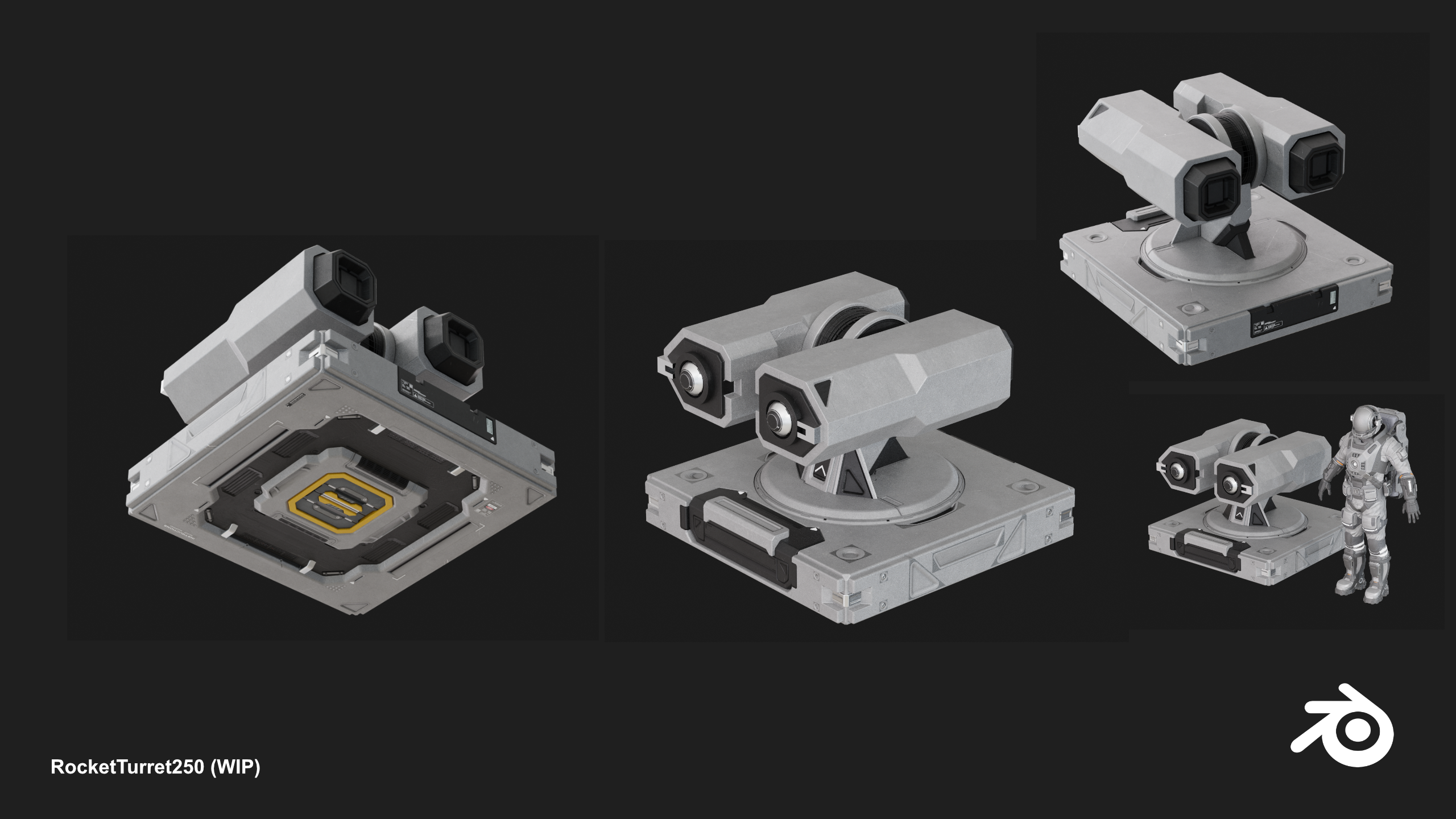 I also want to show you this adorable little guy – your future Small Rocket Turret. It has a very different presence compared to the large version, but it follows the same overall philosophy. We want these blocks to feel functional, readable, and believable as parts of a larger ship or base, while still having enough character to stand out on their own.