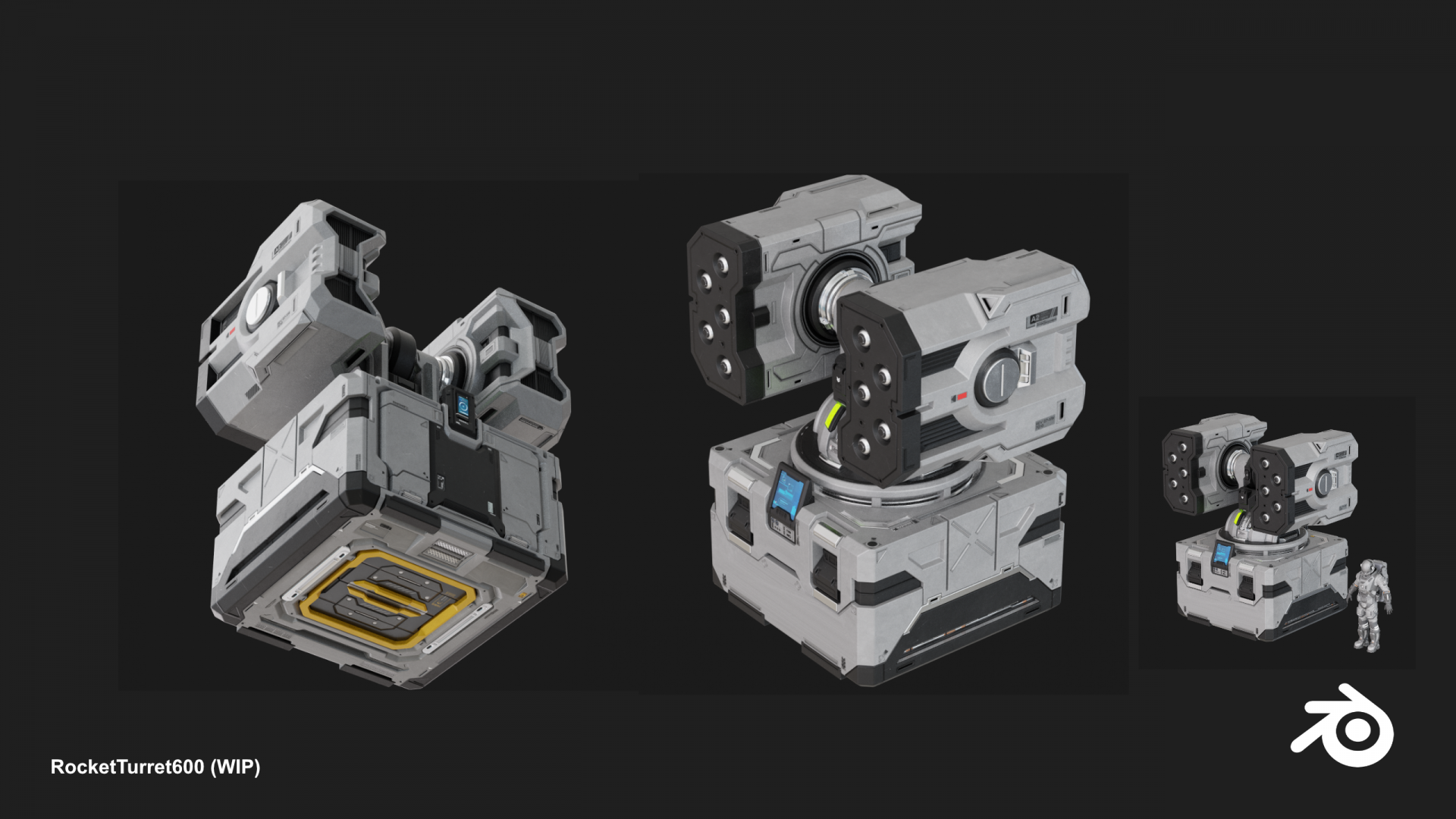 We’ve also been continuing work on weapon blocks, and today I want to show a bit more of that process. Here you can see the Large Rocket Turret evolving from concept art to final model. I always like these comparisons because they show how an early idea gradually becomes something real in the game – shaped by gameplay needs, visual language, technical constraints, and a lot of iteration along the way.